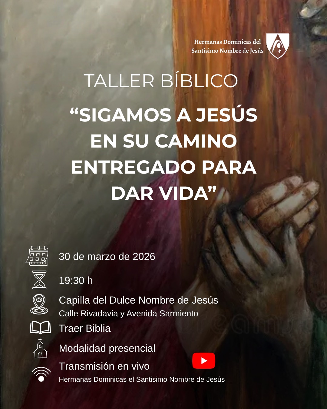 Modalidad: Presencial con transmisión en vivo a través de nuestro canal de YouTube: Hermanas Dominicas el Santísimo Nombre de Jesús.
